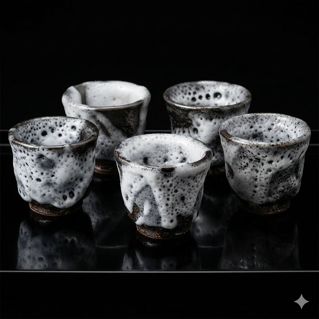 萩原啓蔵 作 ぐい呑み「小雪釉(虫喰い)」