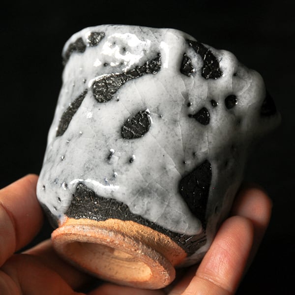 Black clay with white glaze—this pairing can be seen as one of Keizō’s recurring motifs. Yet even with the same combination, each piece develops a completely different character, which is part of its fascination.